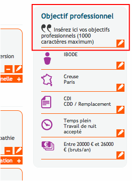 Sur leurs CV en ligne, Staffsanté et Staffsocial vous propose une ligne « objectifs professionnels ». Remplissez-la pour être plus visible des recruteurs avec 1000 caractères maximum !